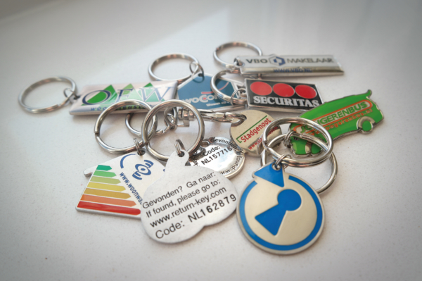 Dit is de custom-made Return Key sleutelhanger met een eigen logo. Op de achterzijde staat de instructietekst en unieke code. Verpakt in een duurzame kartonnen verpakking incl. gebruiksaanwijzing.